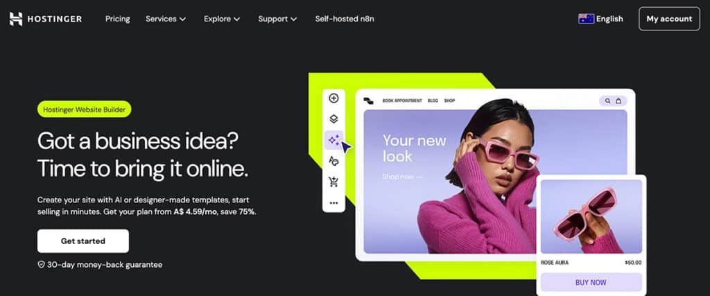 Hostinger is known for affordable web hosting and they now include an AI website builder. It is a budget-friendly option.